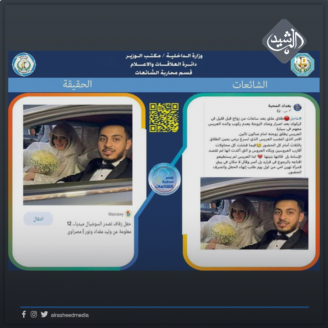 الداخلية تنفي وقوع حالة طلاق نتيجة رفض العروس ركوب والدة العريس معها بكركوك