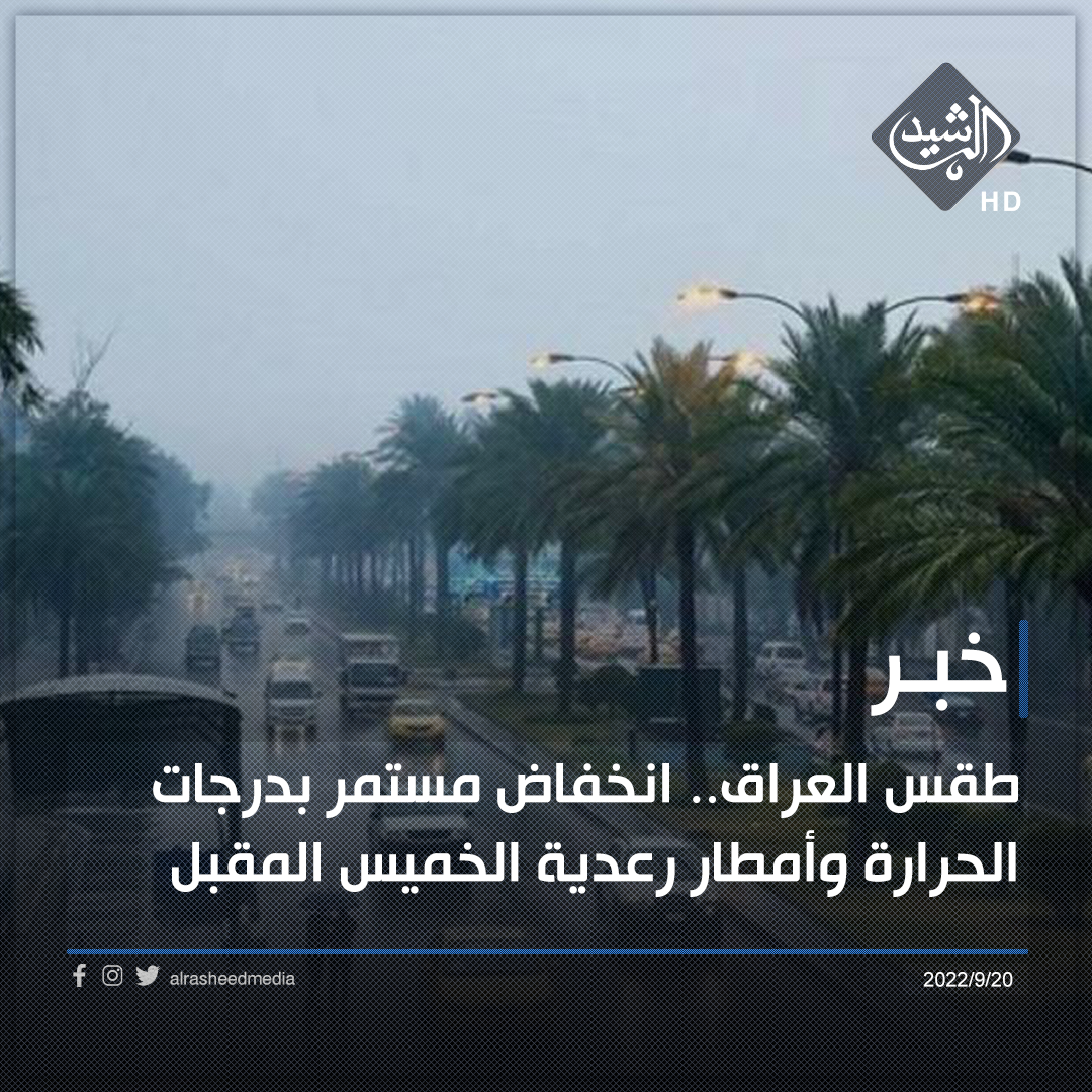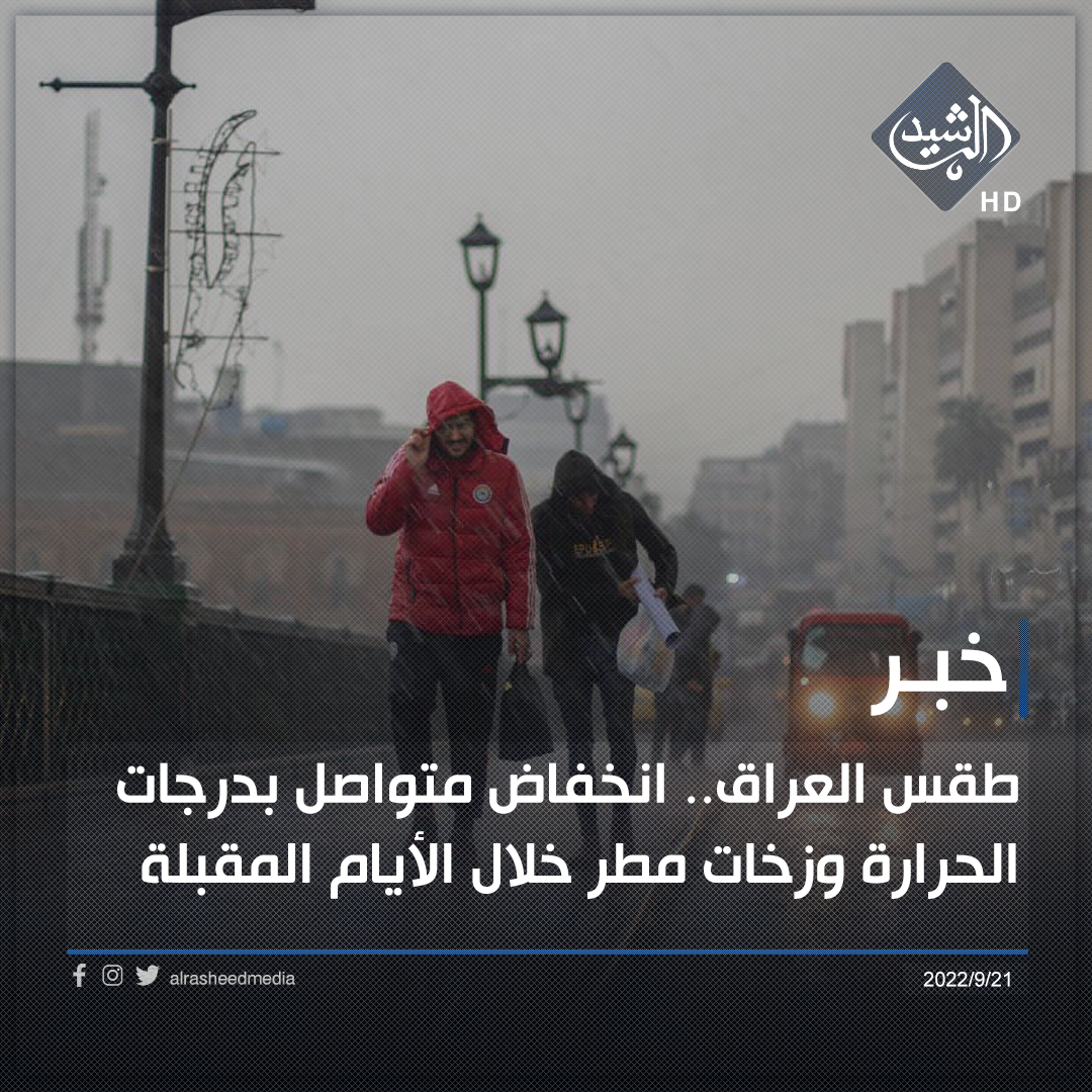 طقس العراق.. انخفاض مستمر بدرجات الحرارة وأمطار رعدية الخميس المقبل
