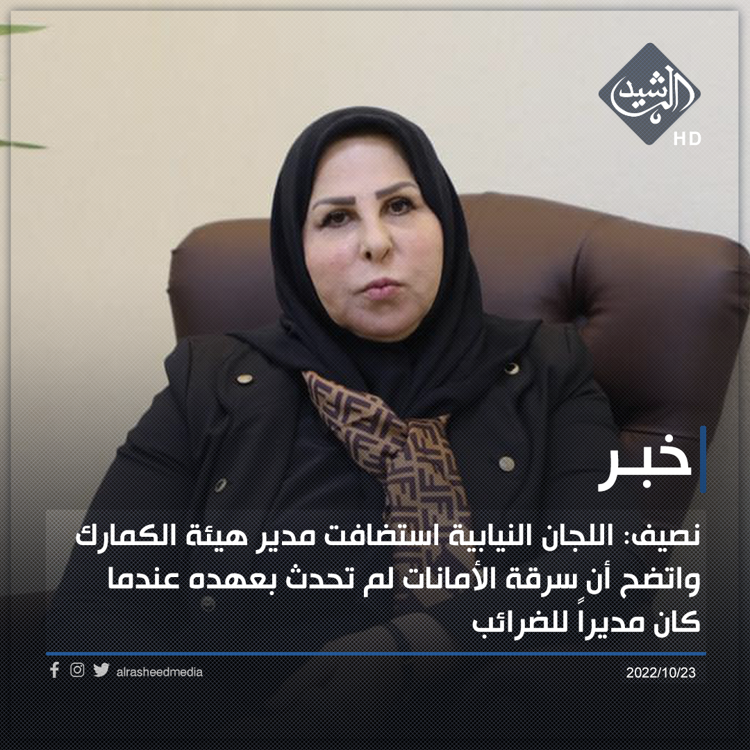 نصيف: اللجان النيابية استضافت مدير هيئة الكمارك واتضح أن سرقة الأمانات لم تحدث بعهده عندما كان مديراً للضرائب