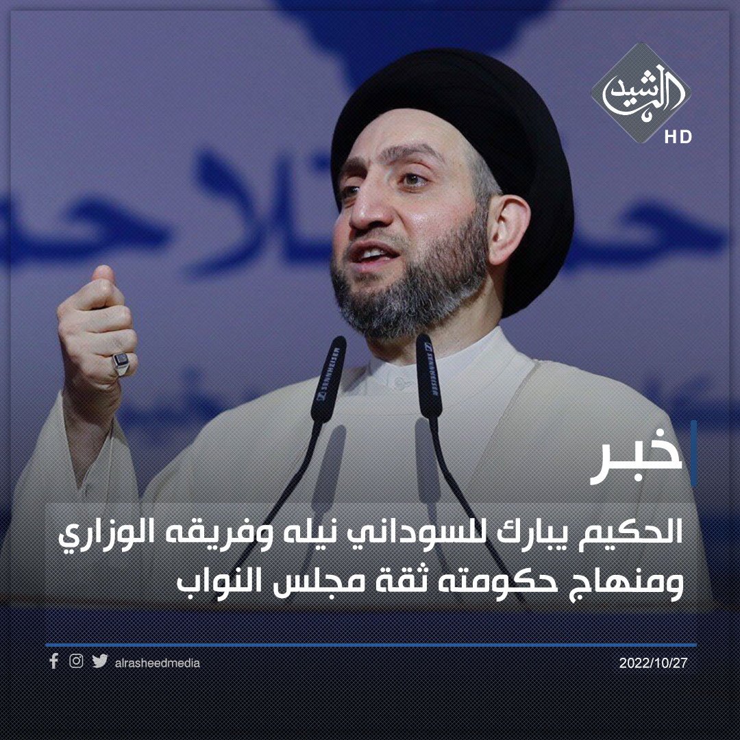 الحكيم يبارك للسوداني نيله وفريقه الوزاري ومنهاج حكومته ثقة مجلس النواب