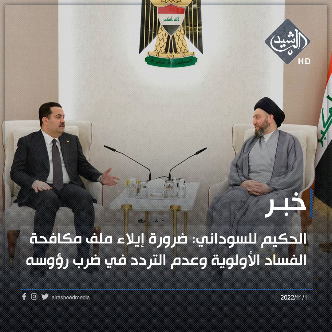 الحكيم للسوداني: ضرورة إيلاء ملف مكافحة الفساد الأولوية وعدم التردد في ضرب رؤوسه