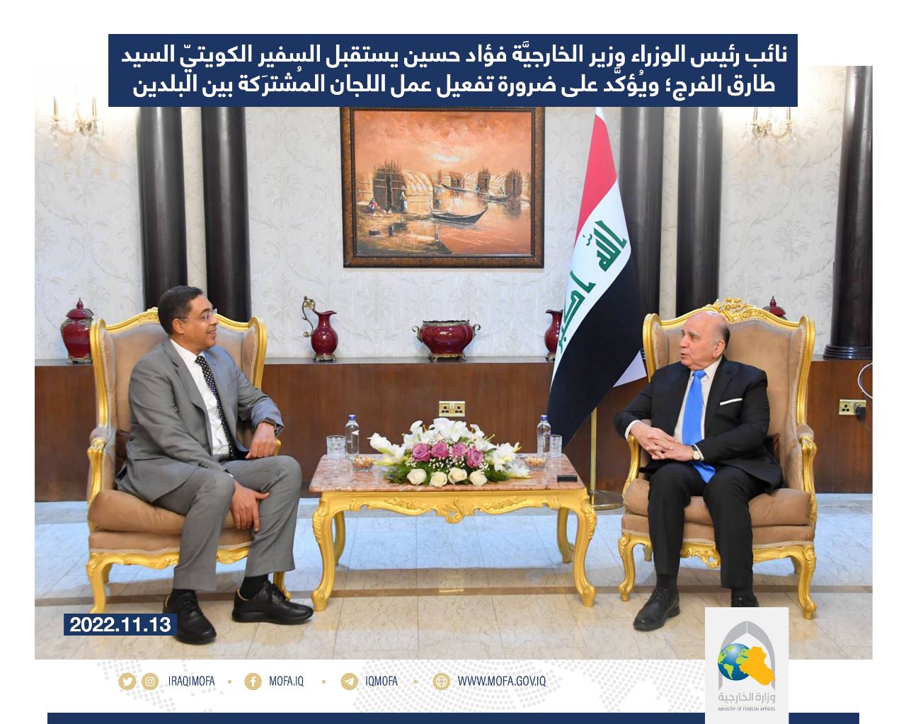 وزير الخارجية يؤكد على ضرورة تفعيل عمل اللجان المُشترَكة بين العراق والكويت