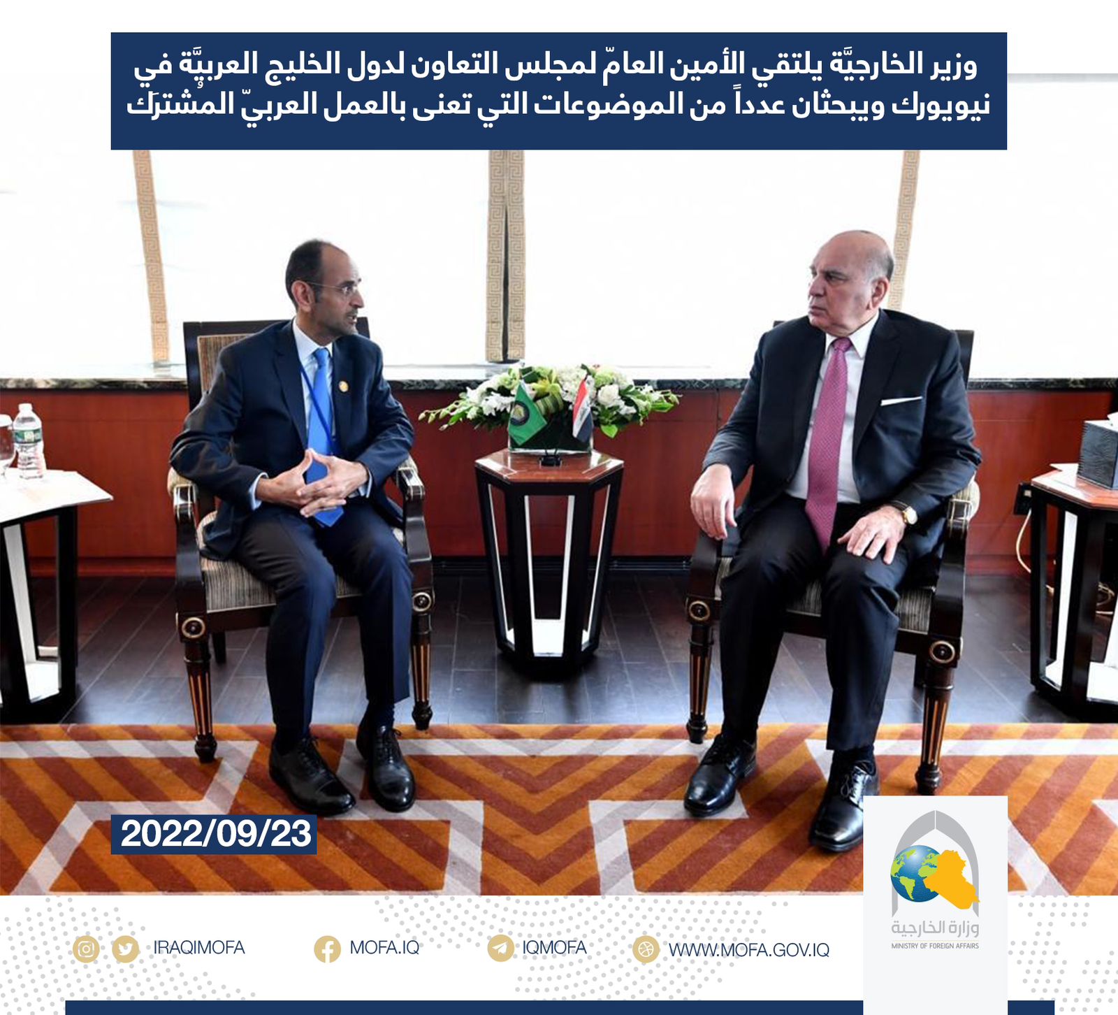 وزير الخارجية: الحكومة العراقية مهتمَّة بتطوير العلاقات مع دول مجلس التعاون الخليجي