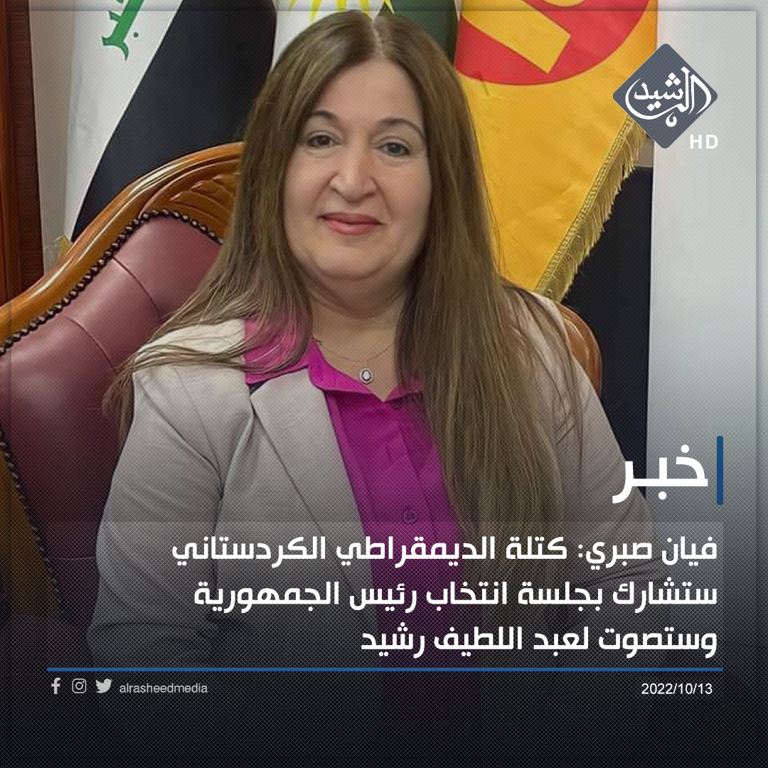فيان صبري: كتلة الديمقراطي الكردستاني ستشارك بجلسة انتخاب رئيس الجمهورية وستصوت لعبد اللطيف رشيد