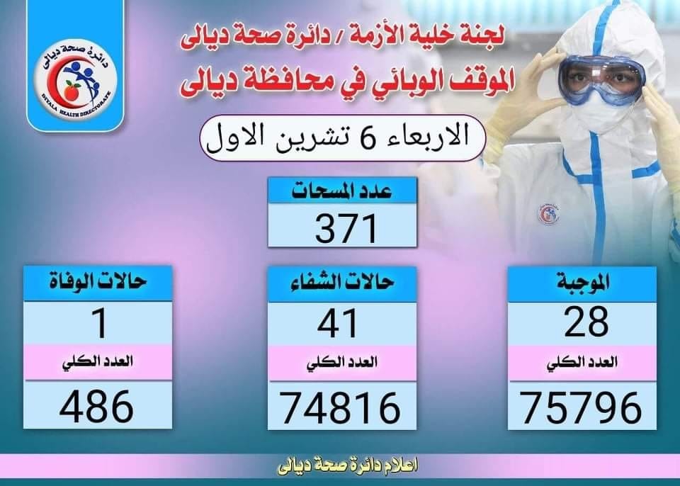 ديالى تسجل 28 اصابة جديدة بفيروس كورونا