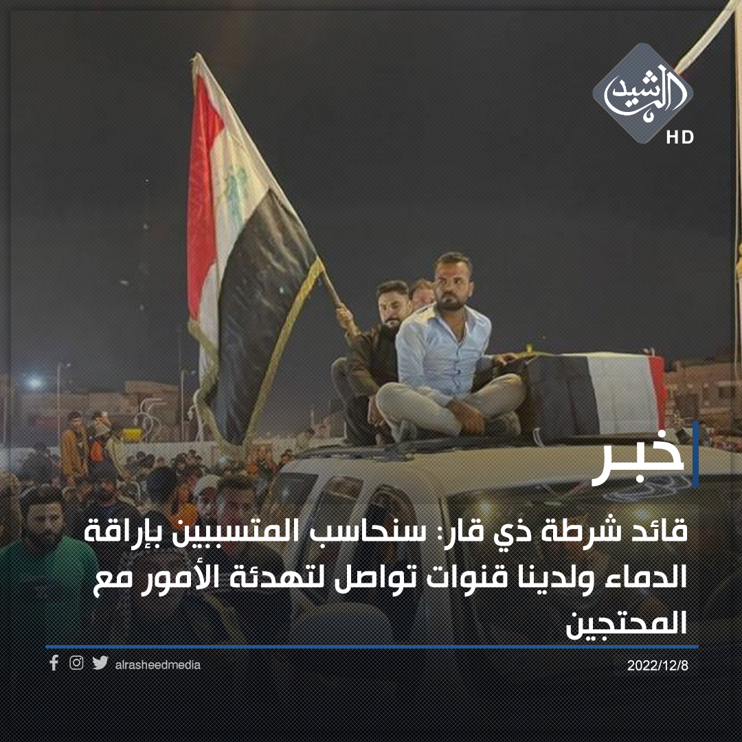 قائد شرطة ذي قار: سنحاسب المتسببين بإراقة الدماء ولدينا قنوات تواصل لتهدئة الأمور مع المحتجين