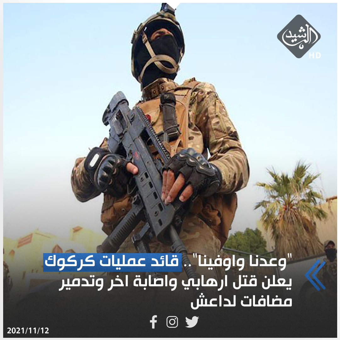 "وعدنا واوفينا".. قائد عمليات كركوك يعلن قتل ارهابي واصابة اخر وتدمير مضافات لداعش