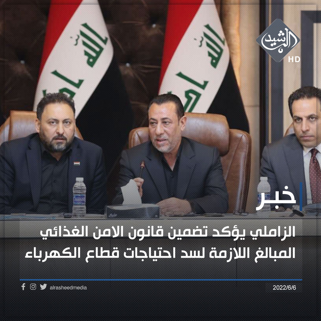 الزاملي يؤكد تضمين قانون الامن الغذائي المبالغ اللازمة لسد احتياجات قطاع الكهرباء