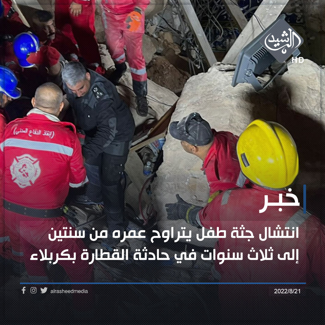 انتشال جثة طفل يتراوح عمره من سنتين إلى ثلاث سنوات في حادثة القطارة بمحافظة كربلاء