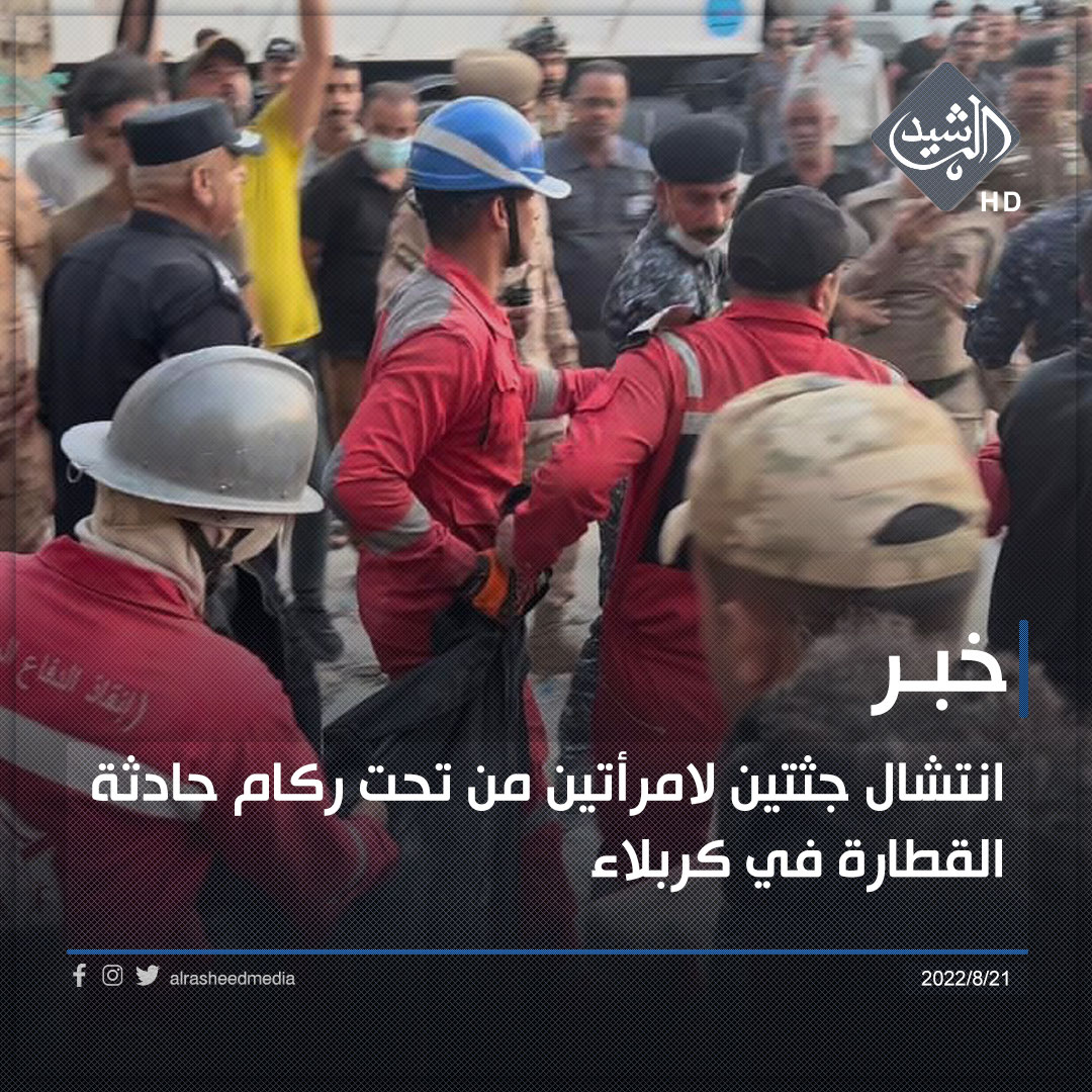 انتشال جثتين لامرأتين من تحت ركام حادثة القطارة في كربلاء