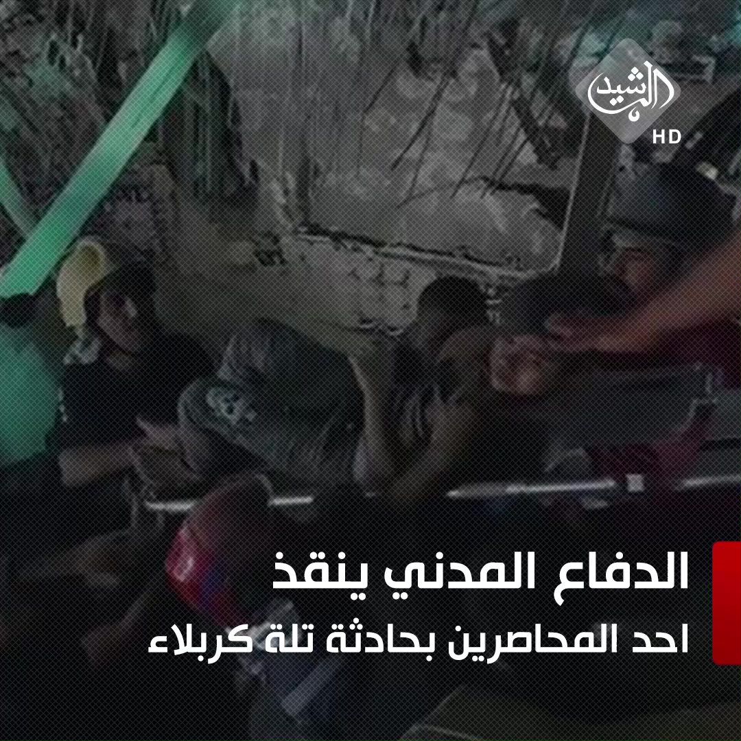 الدفاع المدني يعلن إخراج احد المحاصرين من حادث قطارة الإمام علي (ع)