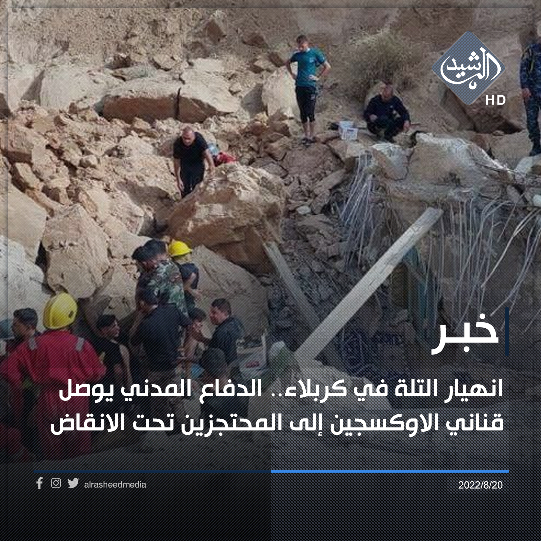 انهيار التلة في كربلاء.. الدفاع المدني يوصل قناني الاوكسجين إلى المحتجزين تحت الانقاض