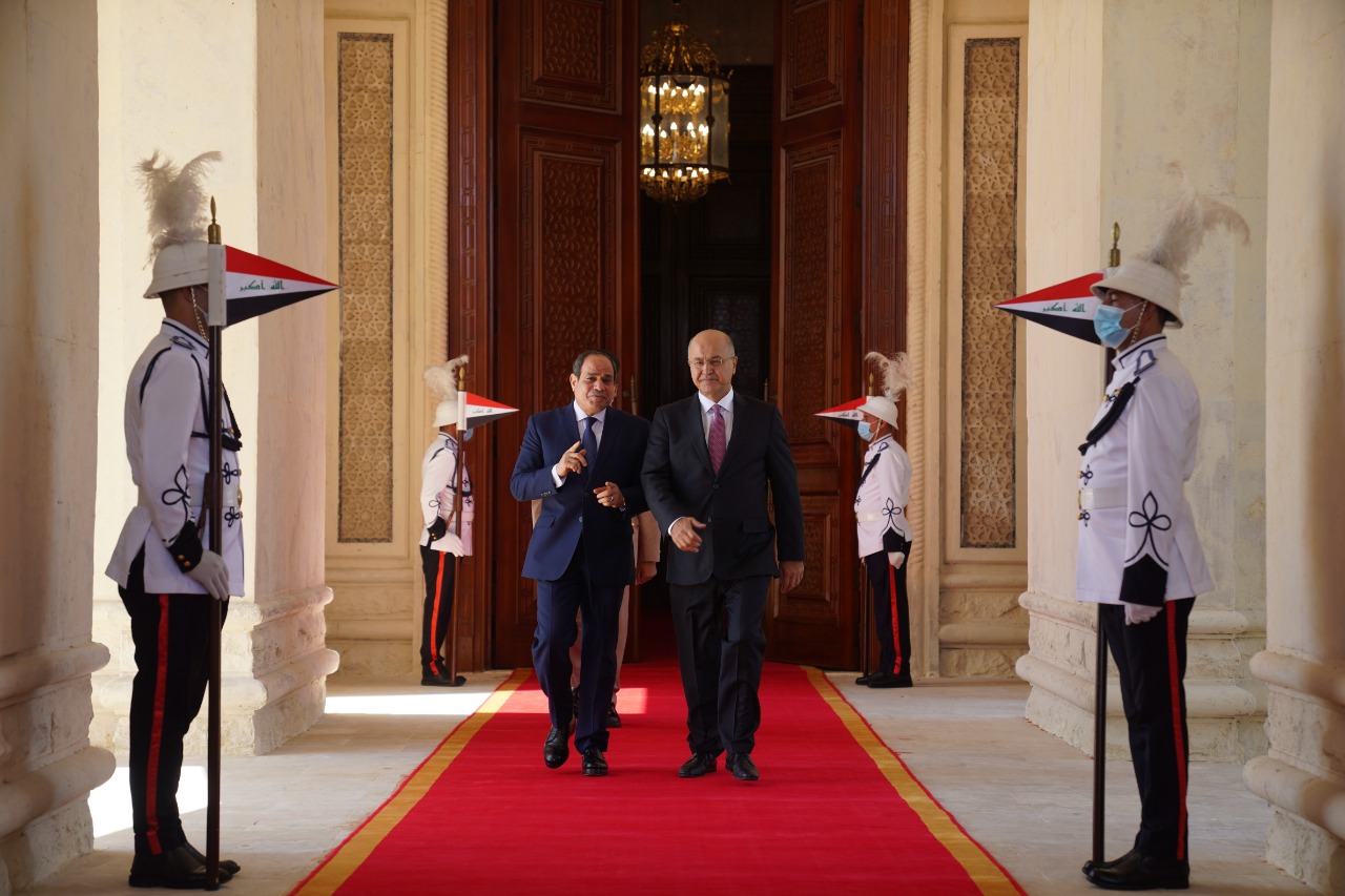رئيس الجمهورية يستقبل نظيره المصري في القصر الحكومي ببغداد