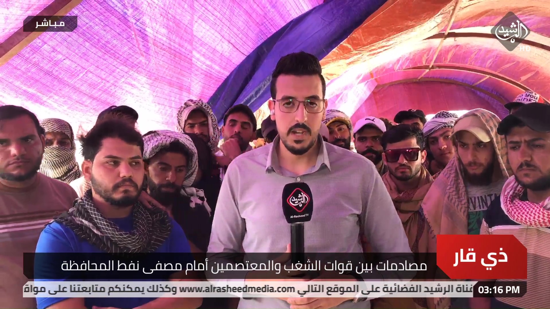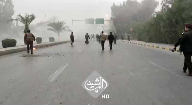 مصادمات بين قوات الشغب والمعتصمين أمام مصفى نفط المحافظة علي الهادي / مراسل الرشيد