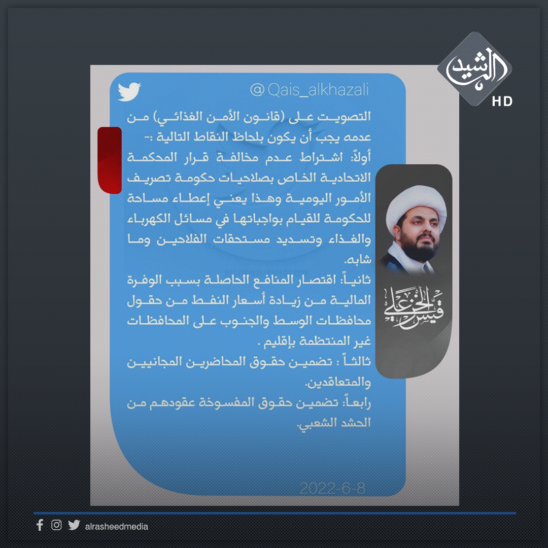 الخزعلي يحدد اربع نقاط خاصة بالتصويت على مقترح قانون الدعم الطارئ