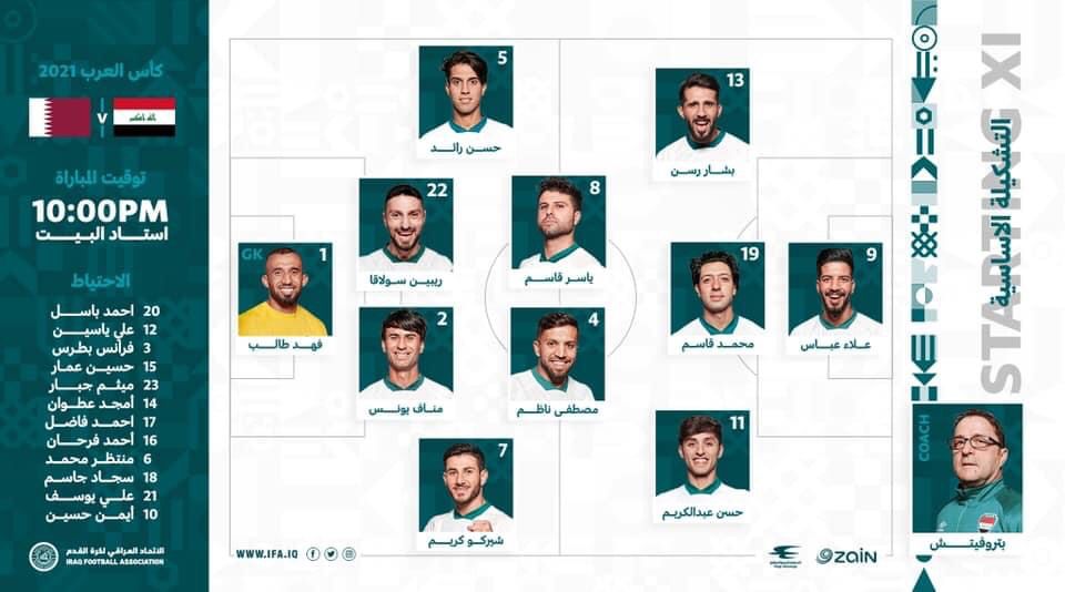 تشكيلة منتخبنا الوطني امام نظيره القطري في كأس العرب