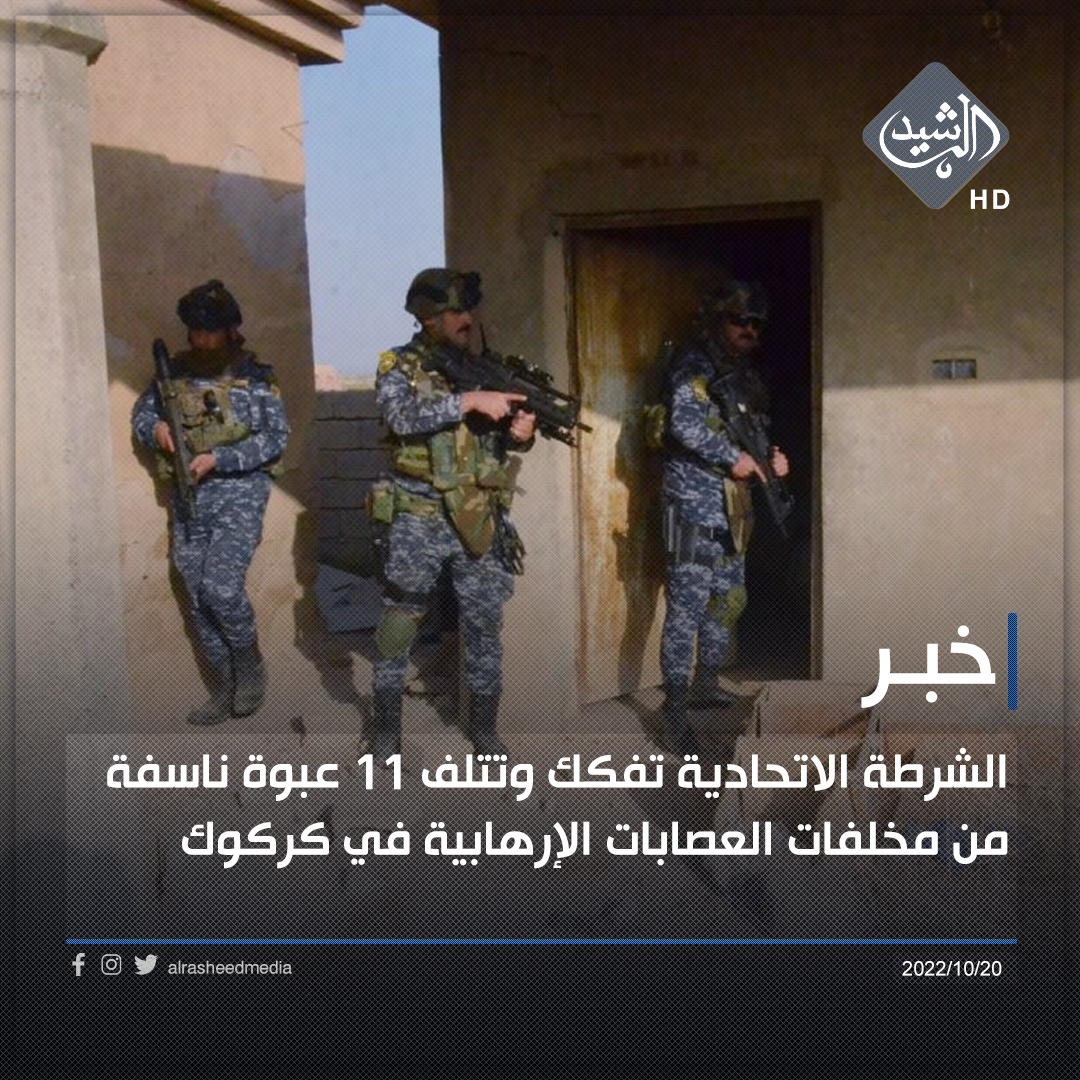 الشرطة الاتحادية تفكك وتتلف 11 عبوة ناسفة من مخلفات العصابات الإرهابية في كركوك