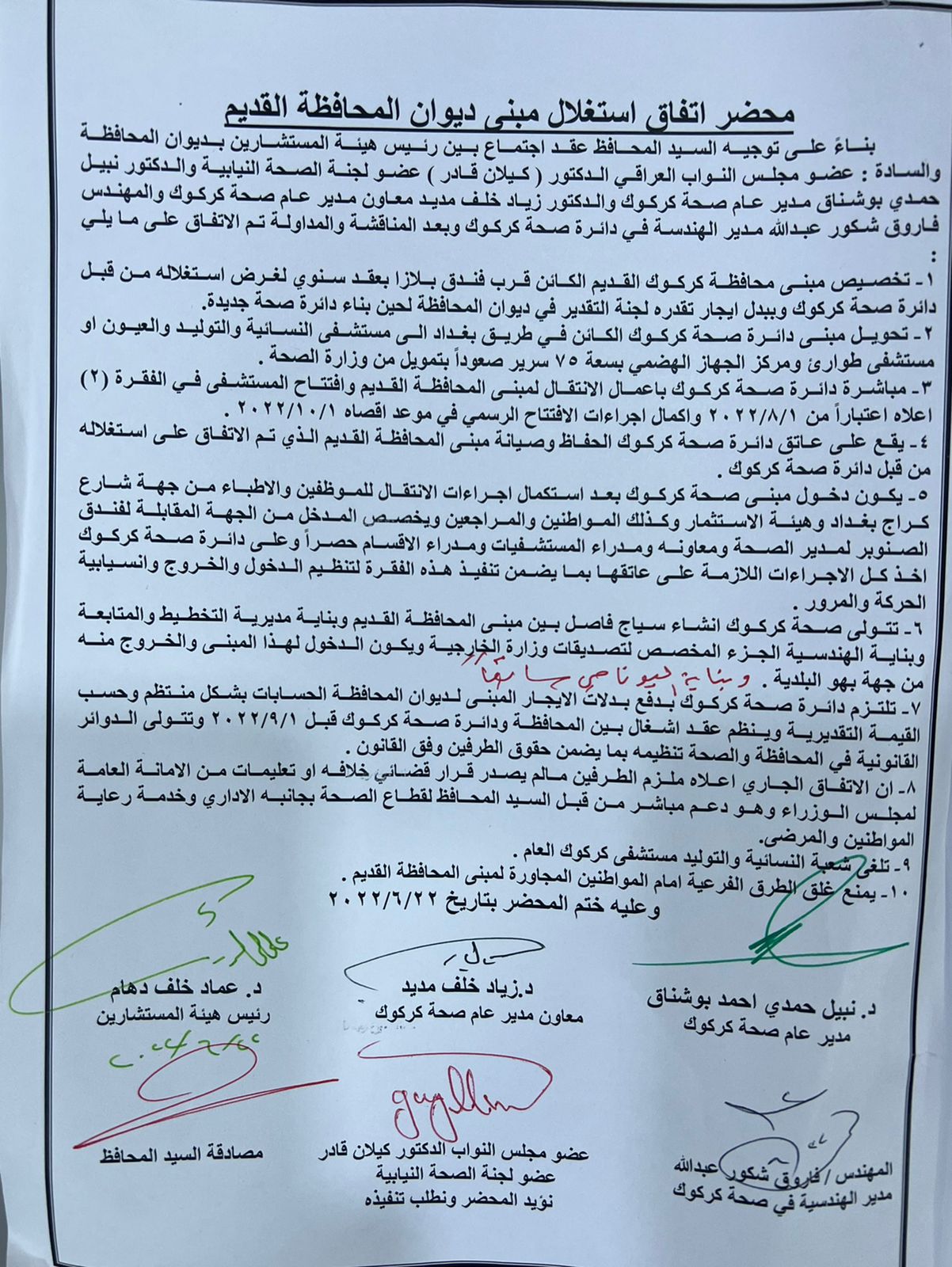 الوثيقة.. ادارة كركوك تقرر تخصيص مبنى المحافظة القديم لدائرة الصحة