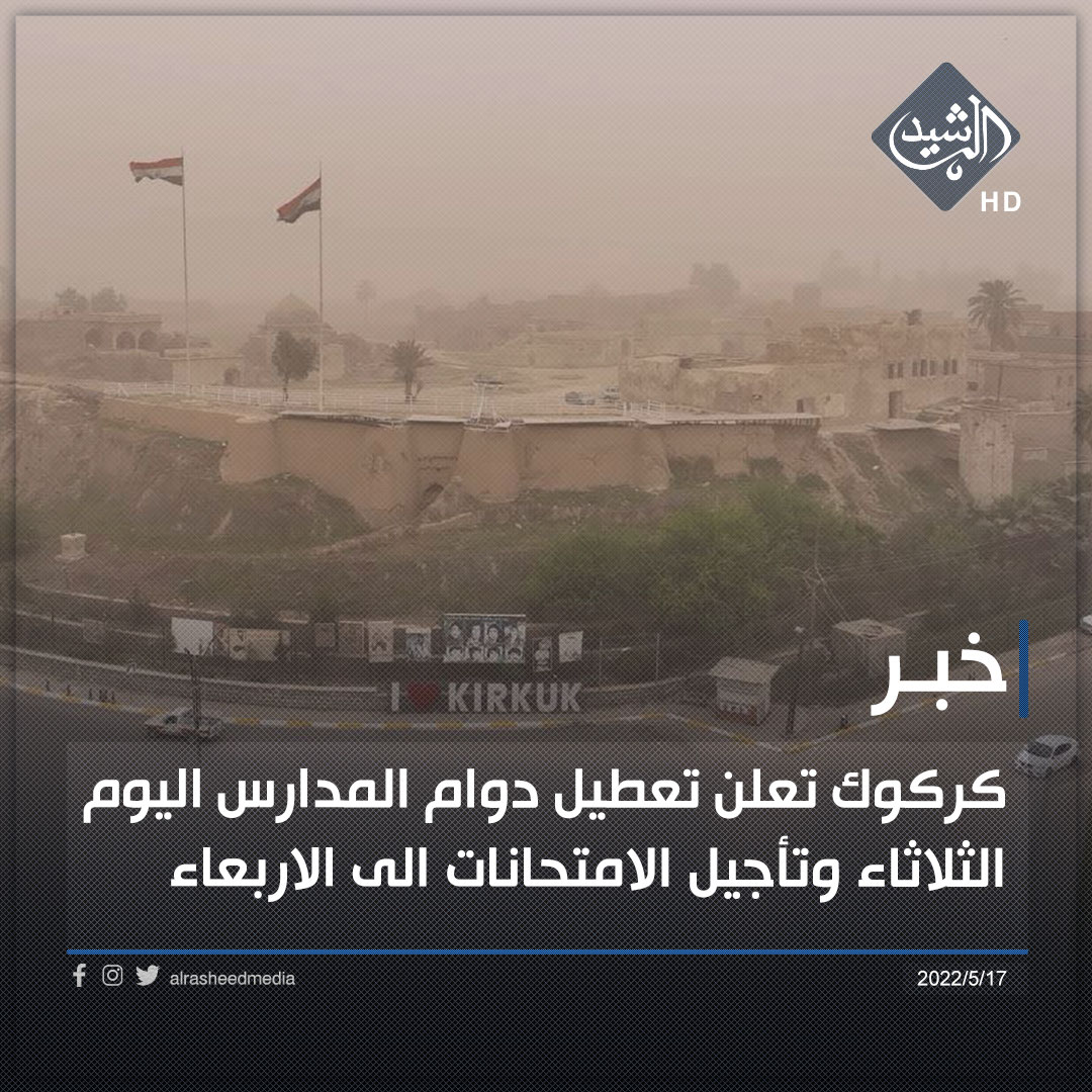 كركوك تعلن تعطيل دوام المدارس اليوم الثلاثاء وتأجيل الامتحانات الى غد الاربعاء