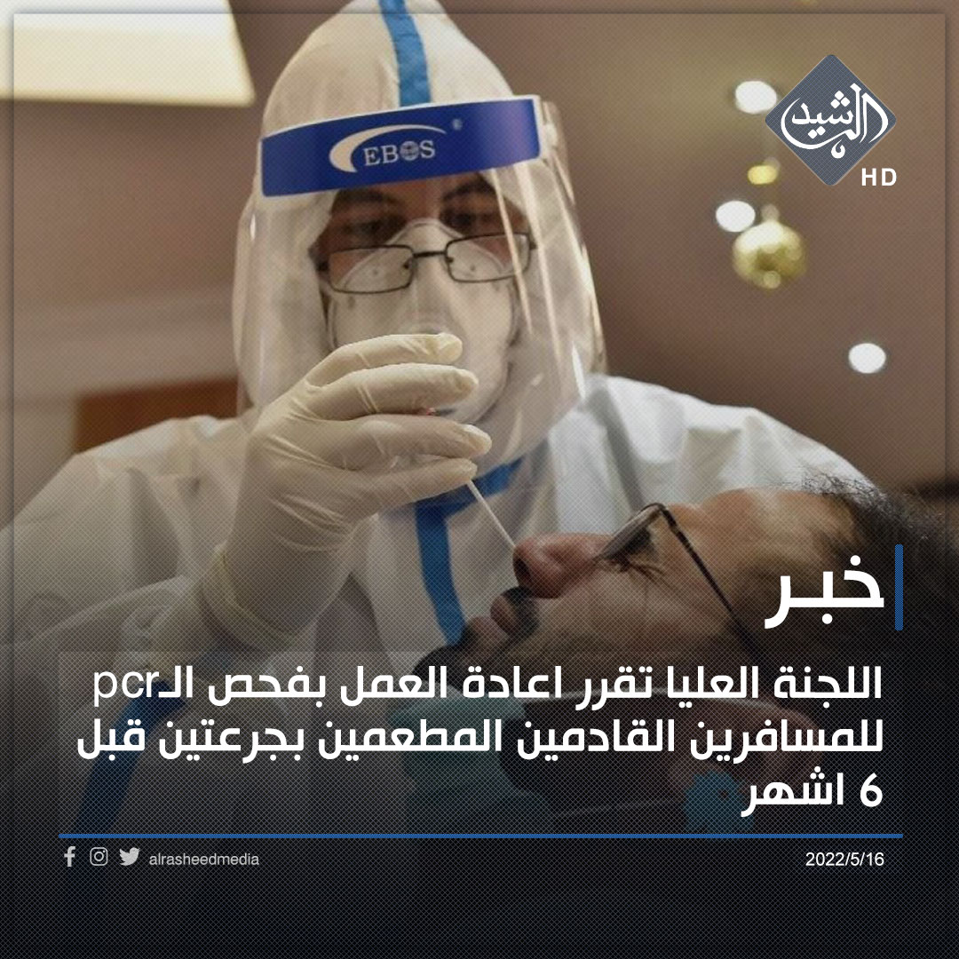 اللجنة العليا تقرر اعادة العمل بفحص الـpcr للمسافرين القادمين المطعمين بجرعتين قبل 6 اشهر