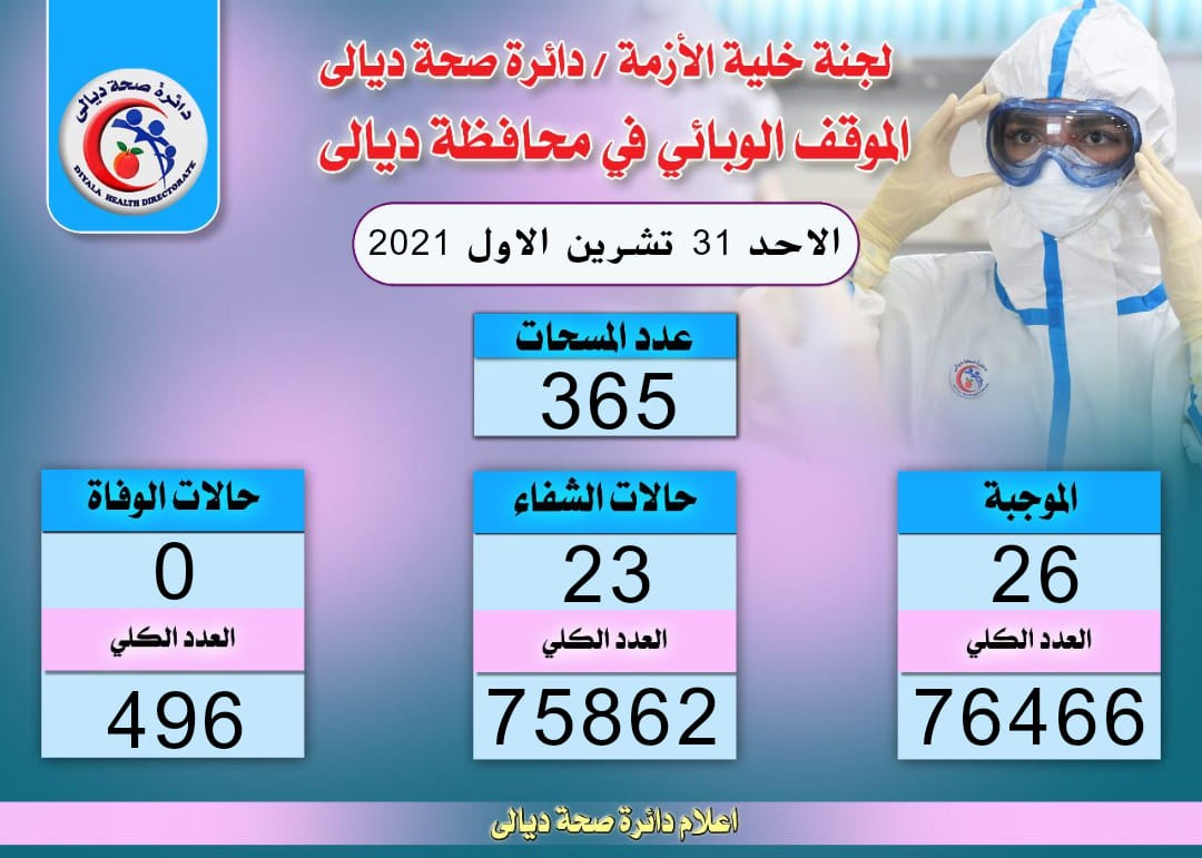 انخفاض بموقف كورونا في ديالى: حالة وفاة و28 اصابة