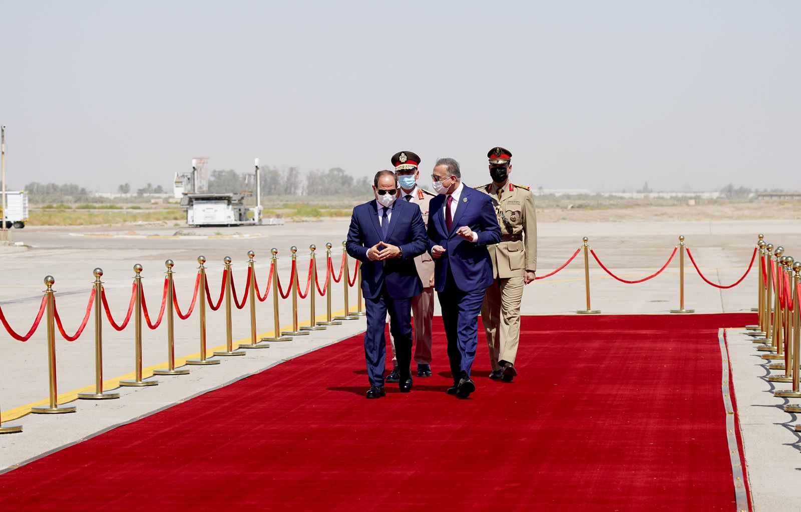 الكاظمي يستقبل الرئيس المصري عبد الفتاح السيسي في مطار بغداد الدولي