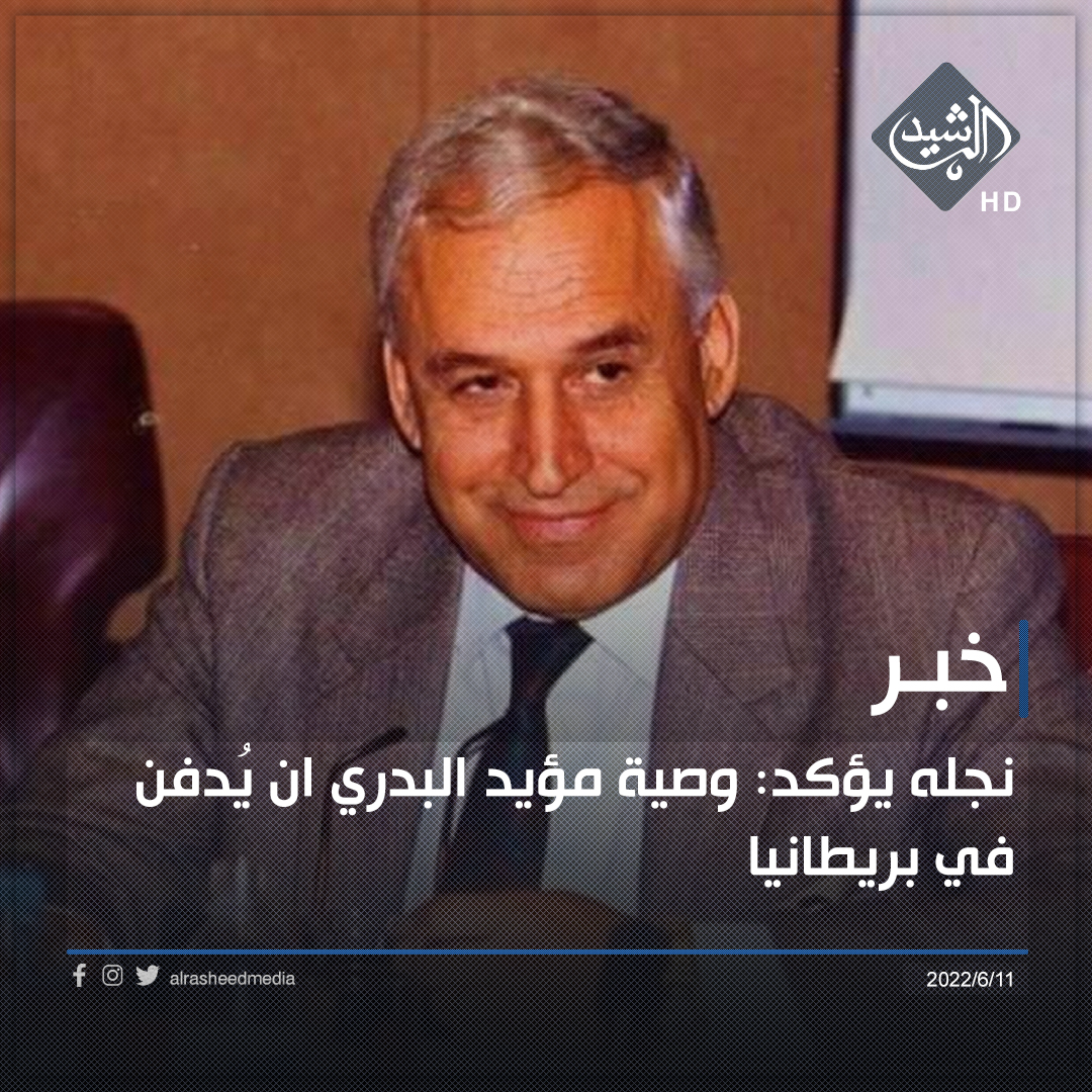 نجله يؤكد: وصية مؤيد البدري ان يُدفن في بريطانيا