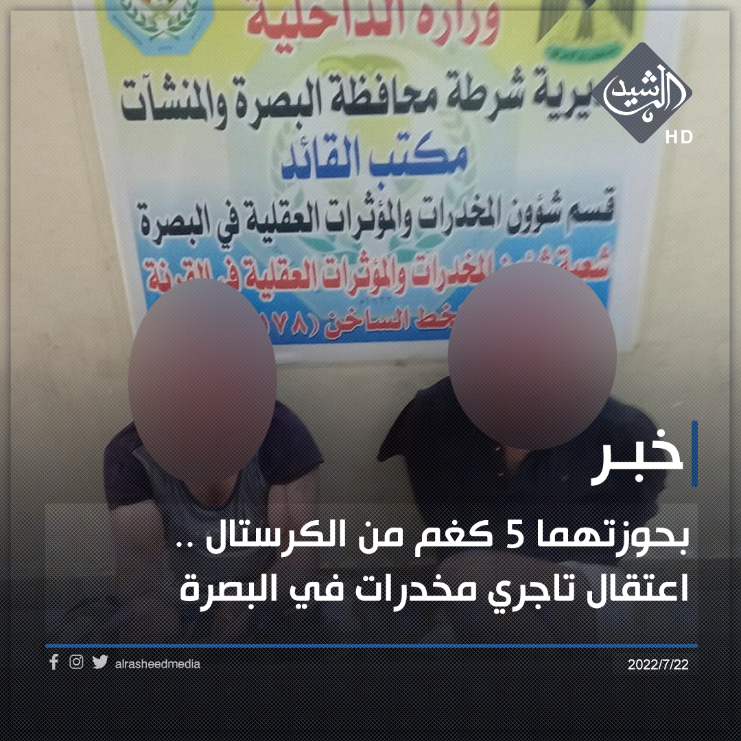 بحوزتهما 5 كغم من الكرستال .. اعتقال تاجري مخدرات في البصرة