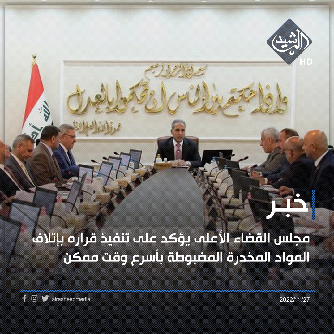 مجلس القضاء الأعلى يؤكد على تنفيذ قراره بإتلاف المواد المخدرة المضبوطة بأسرع وقت ممكن