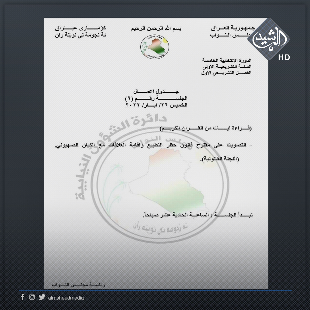 الرشيد تنشر نص قانون تجريم التطبيع مع الكيان الصهيوني