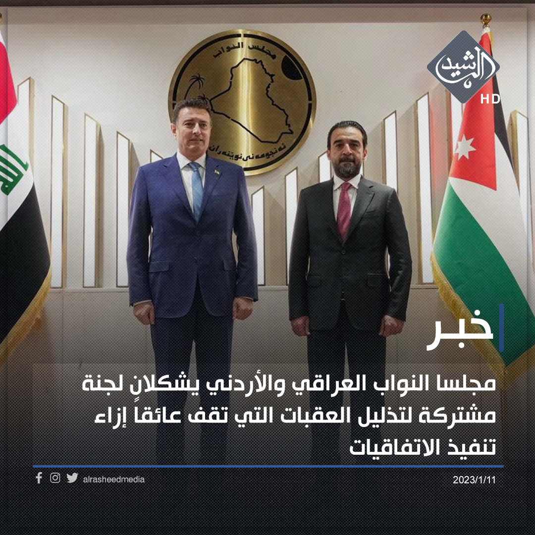 مجلسا النواب العراقي والأردني يشكلان لجنة مشتركة لتذليل العقبات التي تقف عائقاً إزاء تنفيذ الاتفاقيات