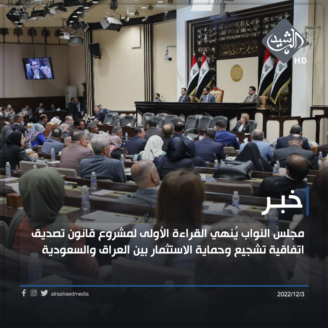 مجلس النواب يُنهي القراءة الأولى لمشروع قانون تصديق اتفاقية تشجيع وحماية الاستثمار بين العراق والسعودية