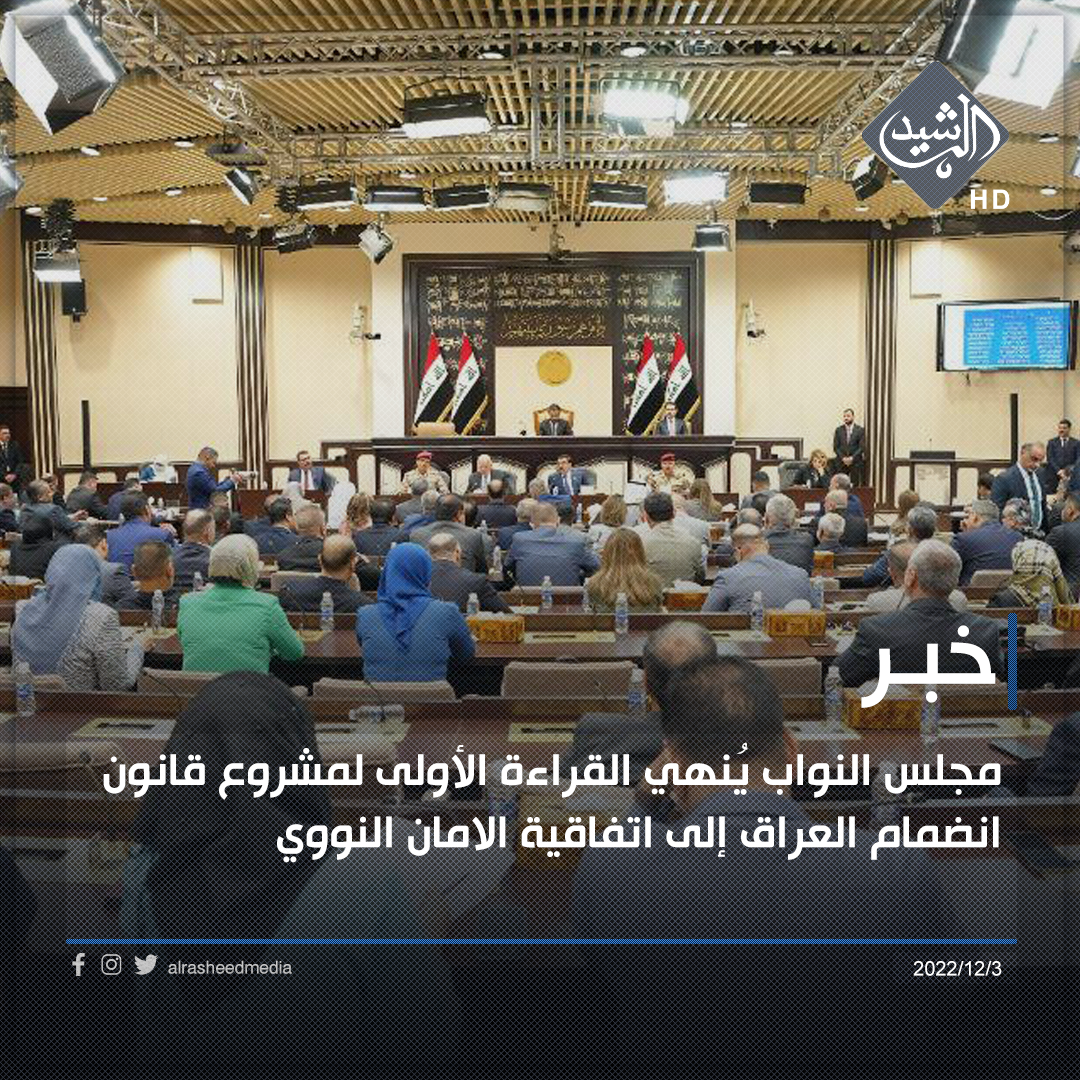مجلس النواب يُنهي القراءة الأولى لمشروع قانون انضمام العراق إلى اتفاقية الامان النووي