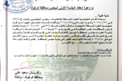 بالوثيقة.. تأجيل الجلسة الأولى لمجلس كركوك إلى الاثنين المقبل