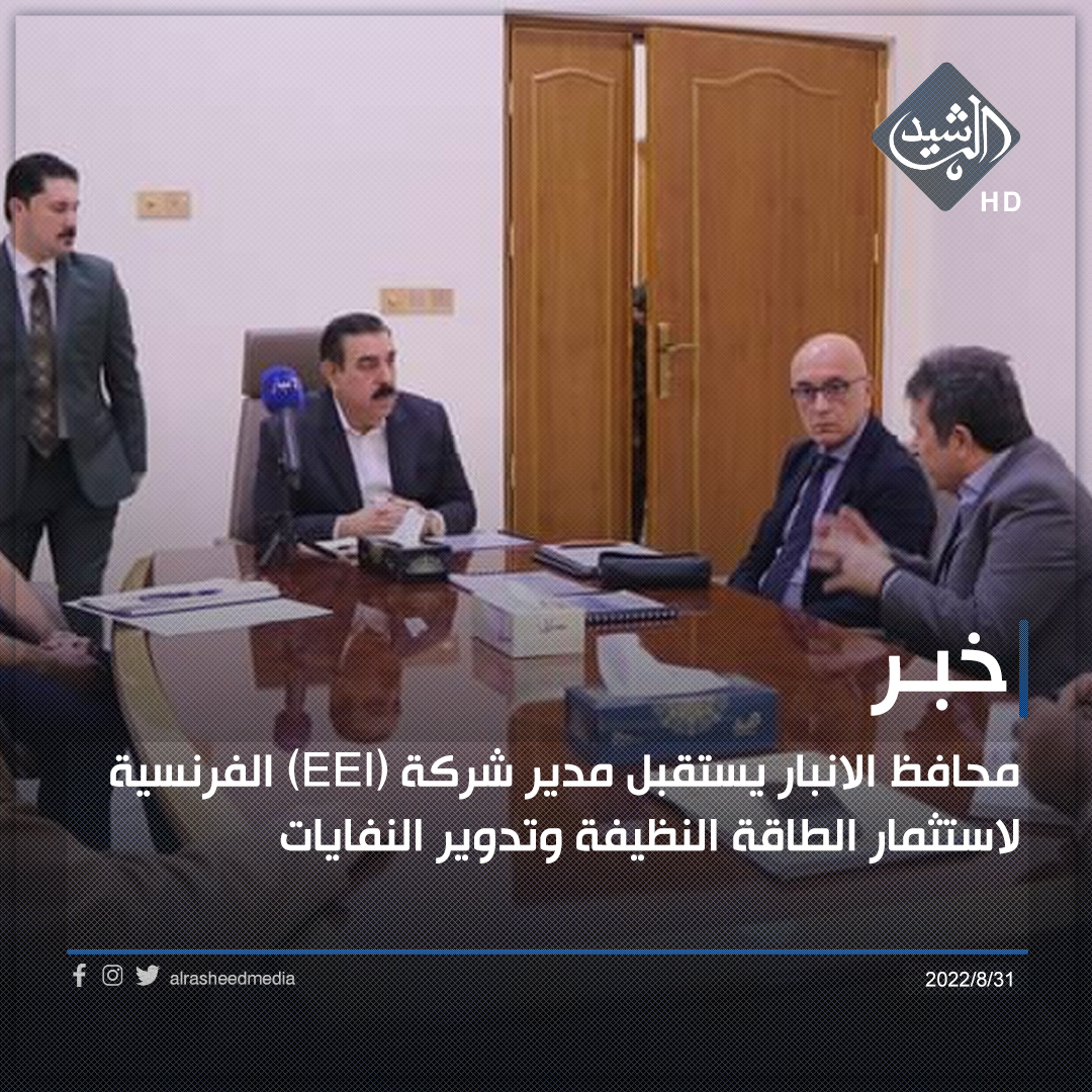 محافظ الانبار يستقبل مدير شركة (EEI) الفرنسية لاستثمار الطاقة النظيفة وتدوير النفايات