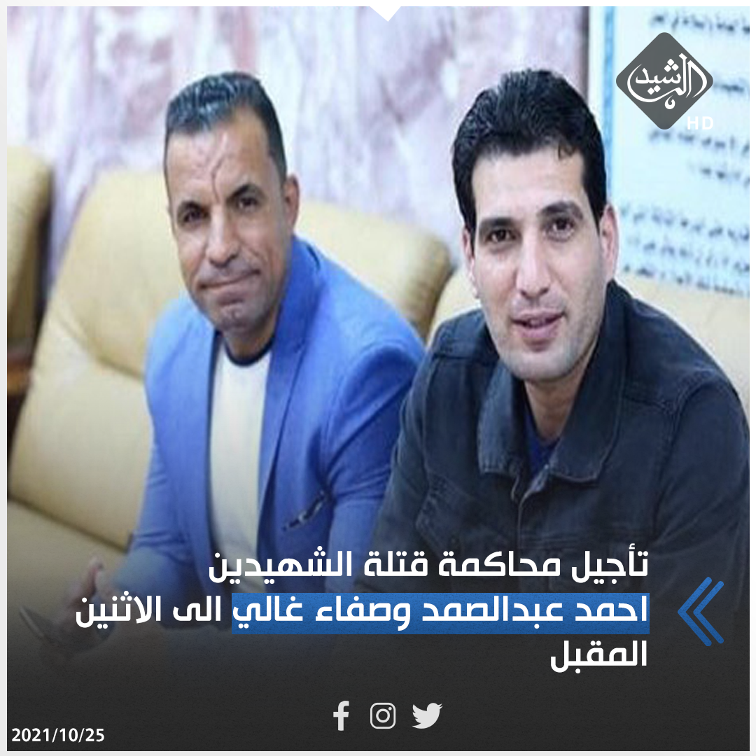 تأجيل محاكمة قتلة الشهيدين احمد عبدالصمد وصفاء غالي الى الاثنين المقبل