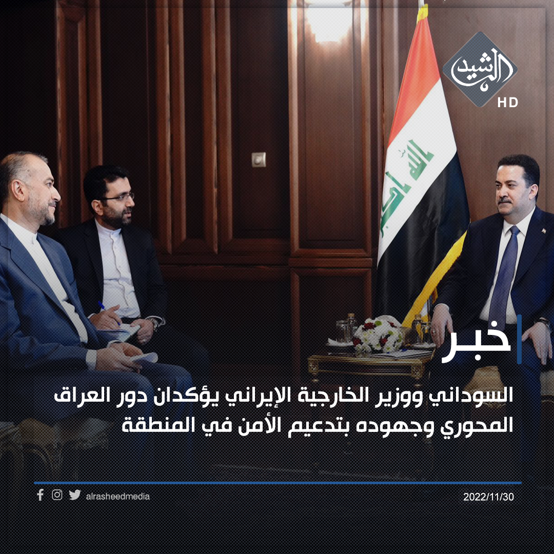 السوداني ووزير الخارجية الإيراني يؤكدان دور العراق المحوري وجهوده بتدعيم الأمن في المنطقة