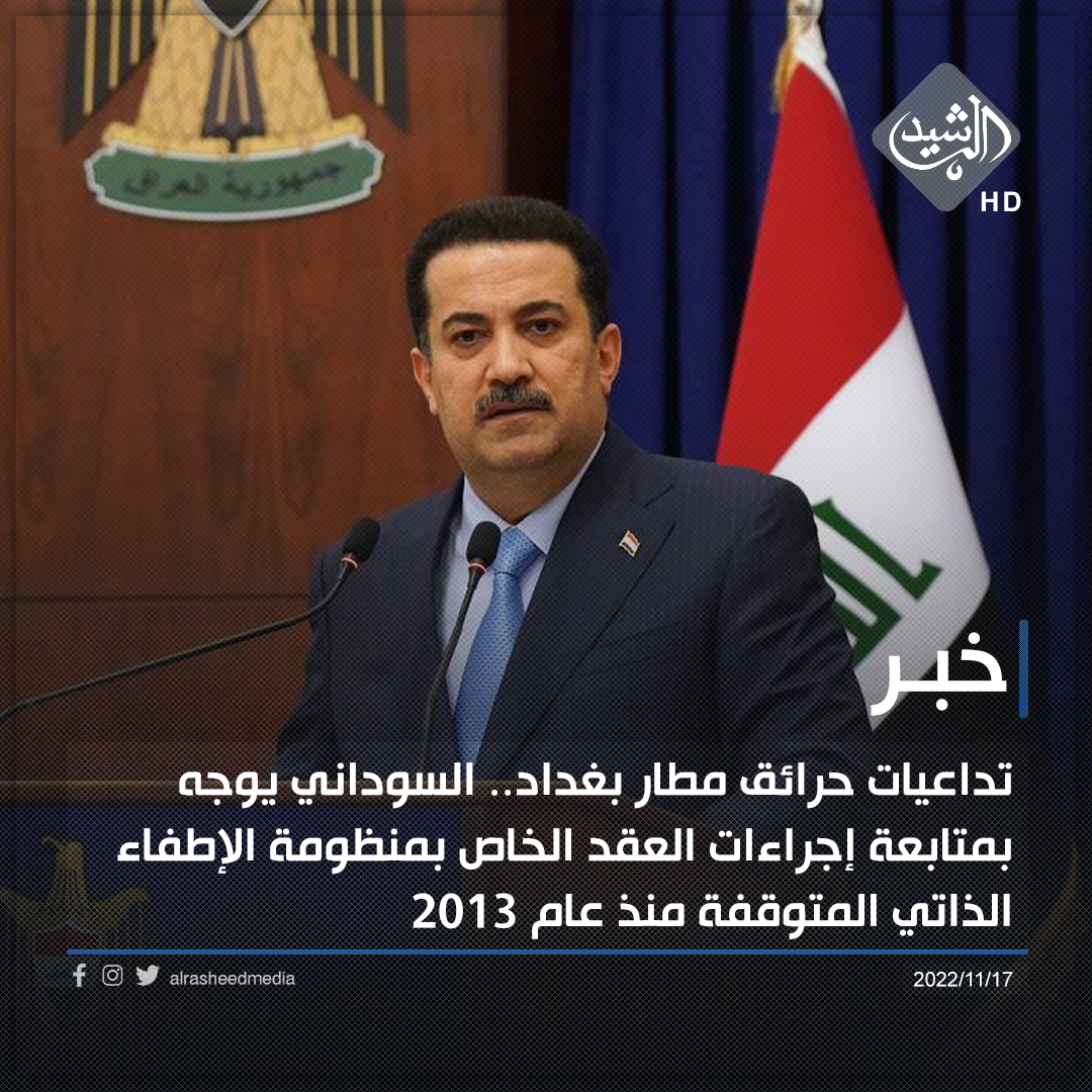تداعيات حرائق مطار بغداد.. السوداني يوجه بمتابعة إجراءات العقد الخاص بمنظومة الإطفاء الذاتي المتوقفة منذ عام 2013