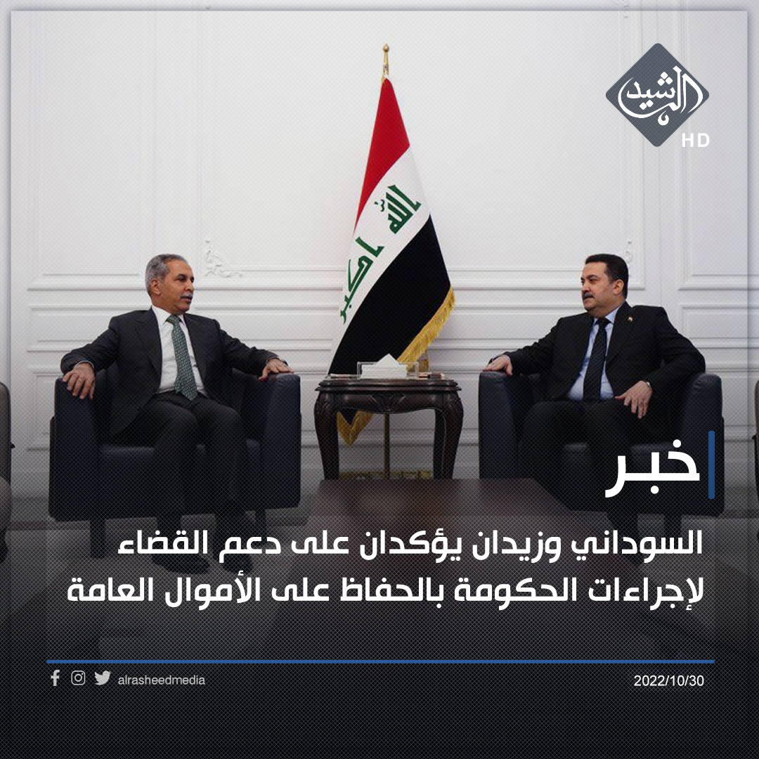 السوداني وزيدان يؤكدان على دعم القضاء لإجراءات الحكومة في الحفاظ على الأموال العامة