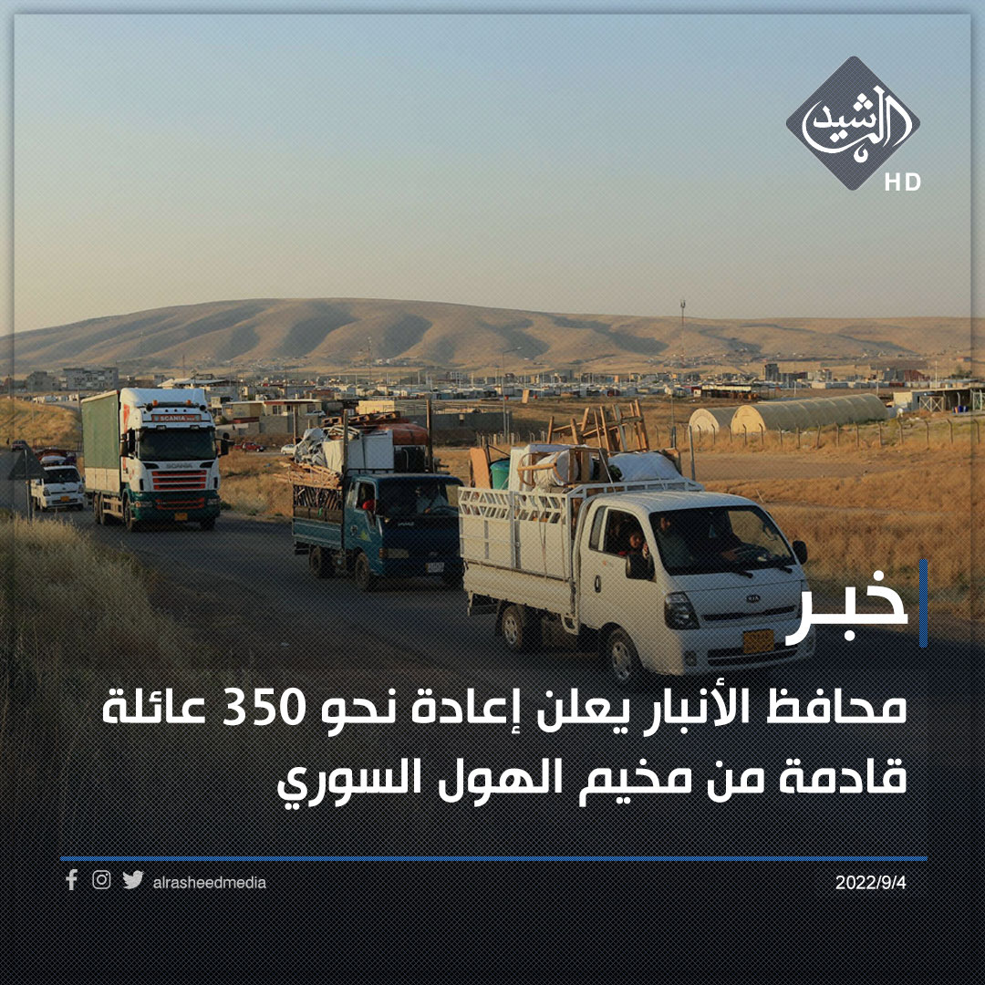 محافظ الأنبار يعلن إعادة نحو 350 عائلة قادمة من مخيم الهول السوري