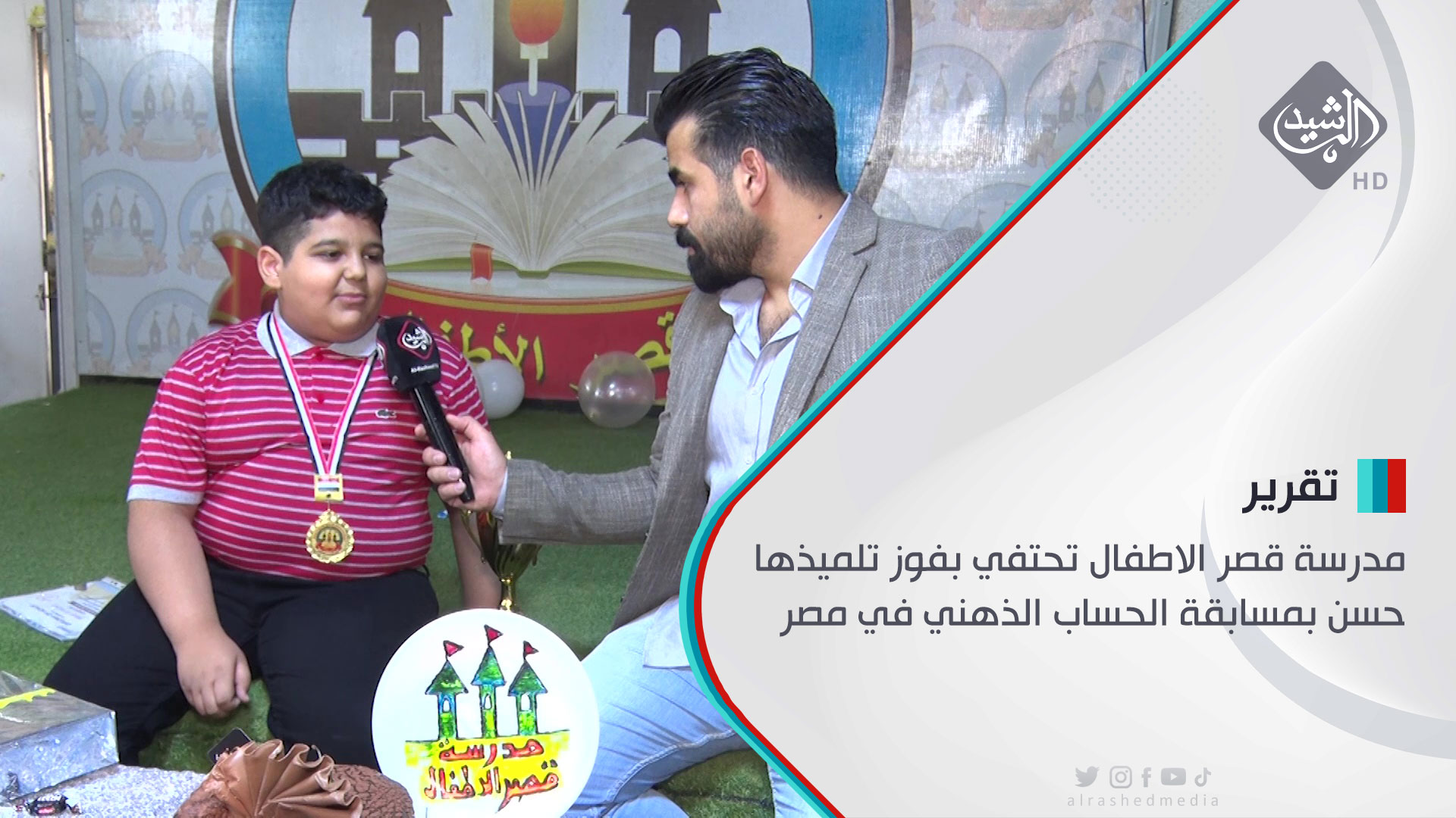 مدرسة قصر الاطفال تحتفي بفوز تلميذها حسن بمسابقة الحساب الذهني في مصر