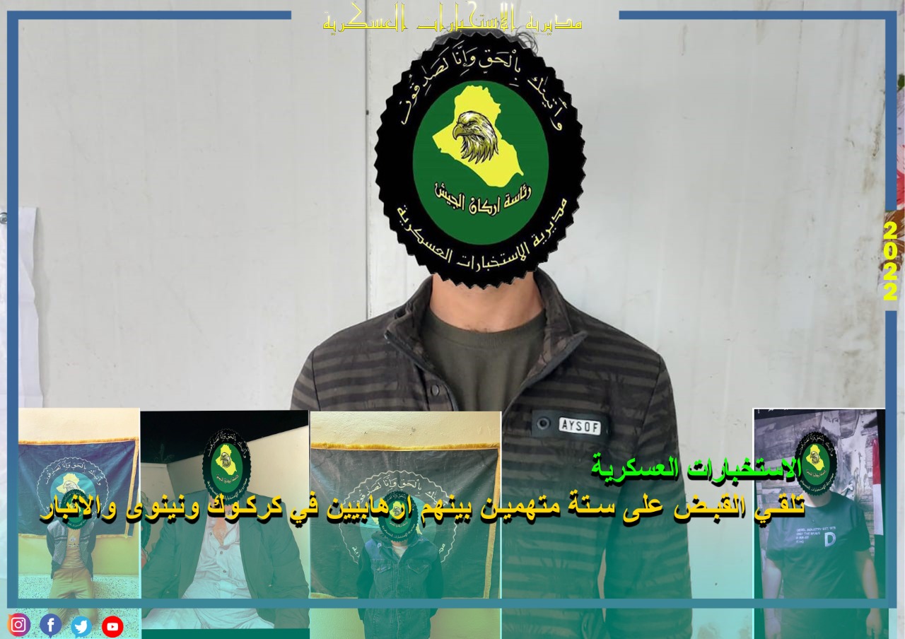 الاستخبارات العسكرية تقبض على 6 متهمين بينهم ارهابيون في كركوك ونينوى والانبار