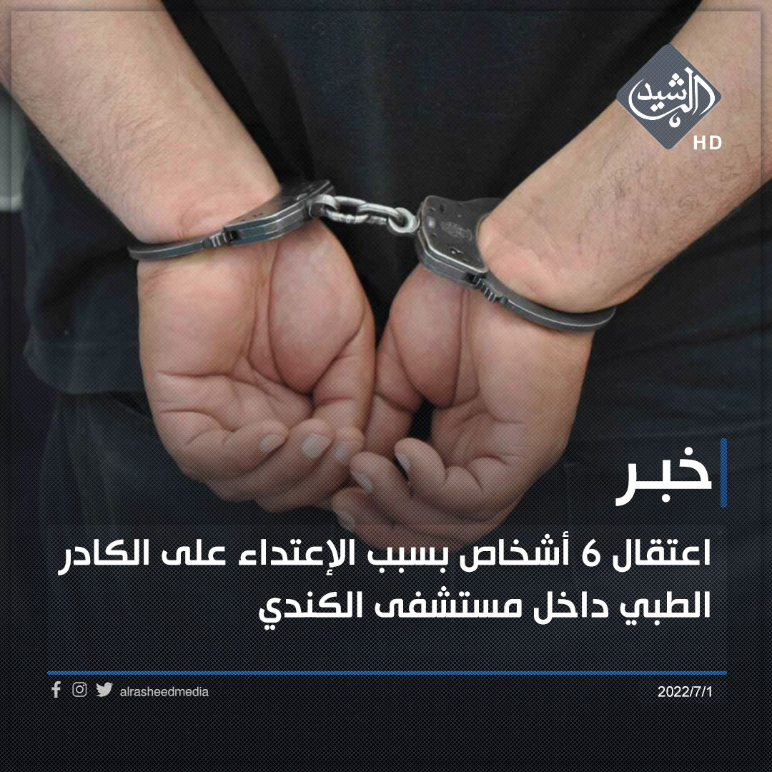اعتقال 6 أشخاص بسبب الإعتداء على الكادر الطبي داخل مستشفى الكندي