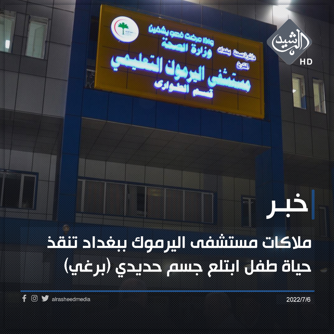 ملاكات مستشفى اليرموك ببغداد تنفذ حياة طفل ابتلع جسم حديدي (برغي)