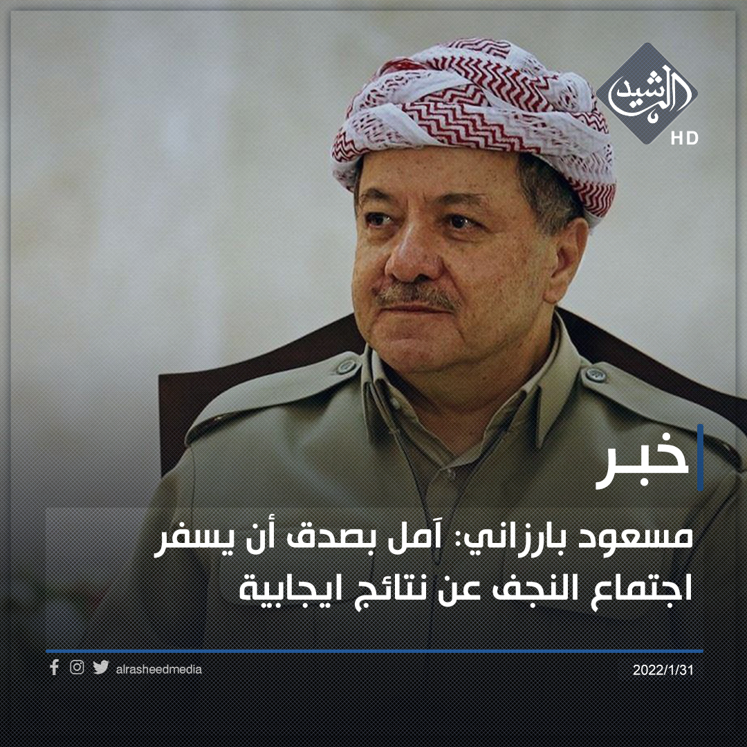 مسعود بارزاني: آمل بصدق أن يسفر اجتماع النجف عن نتائج ايجابية
