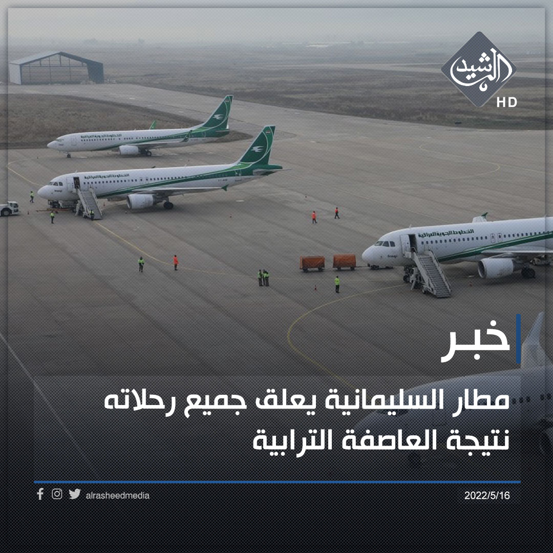 مطار السليمانية يعلق جميع رحلاته نتيجة العاصفة الترابية