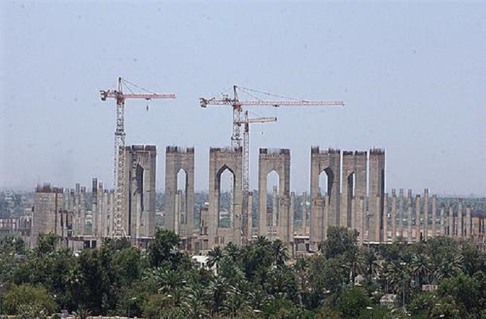 بالصور.. اندلاع حريق داخل مجمع قيد الانشاء على أرض مطار المثنى سابقاً وسط بغداد