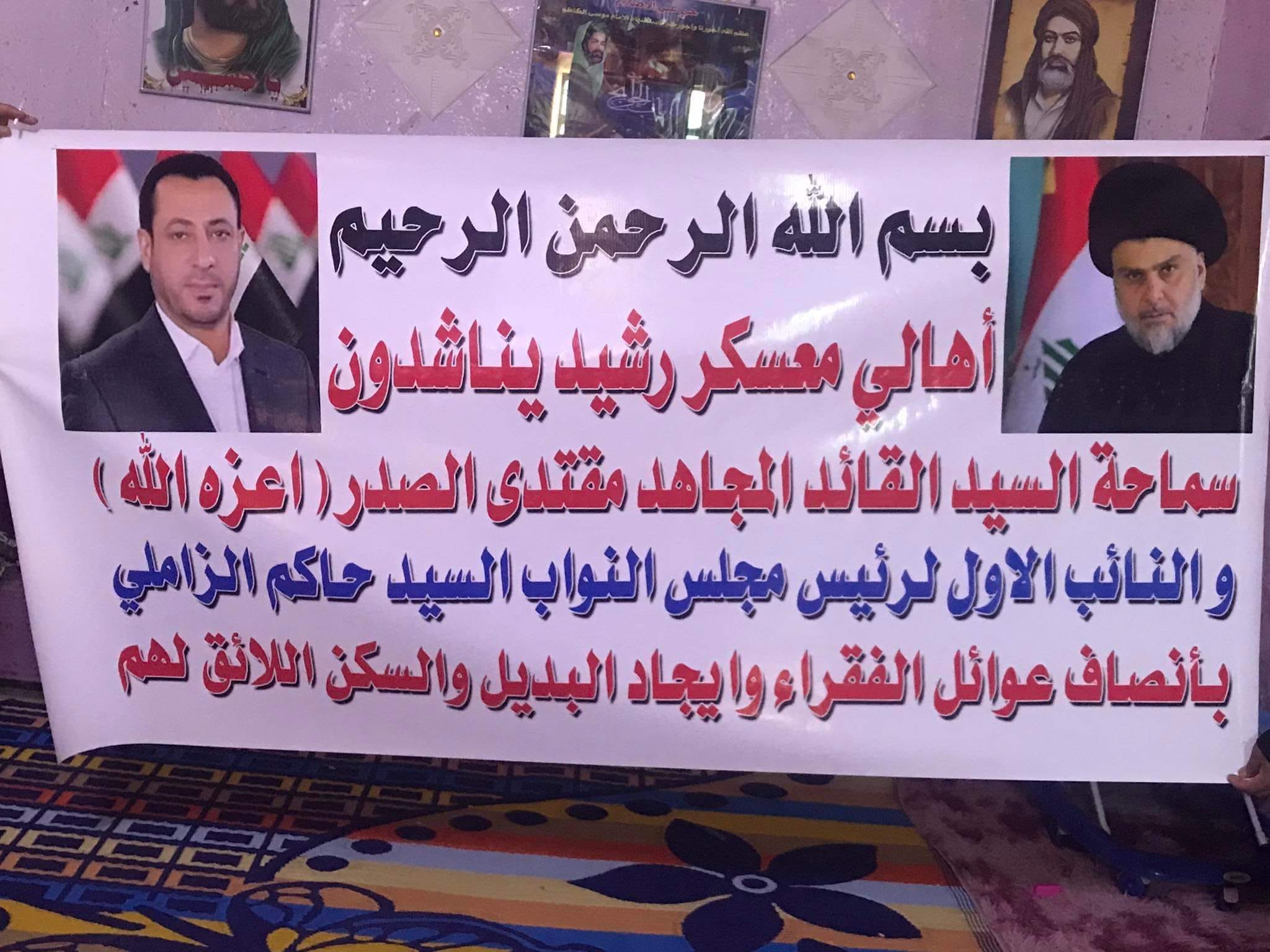 تظاهرة لاهالي معسكر الرشيد في بغداد احتجاجاً على قرار ازالة منازلهم