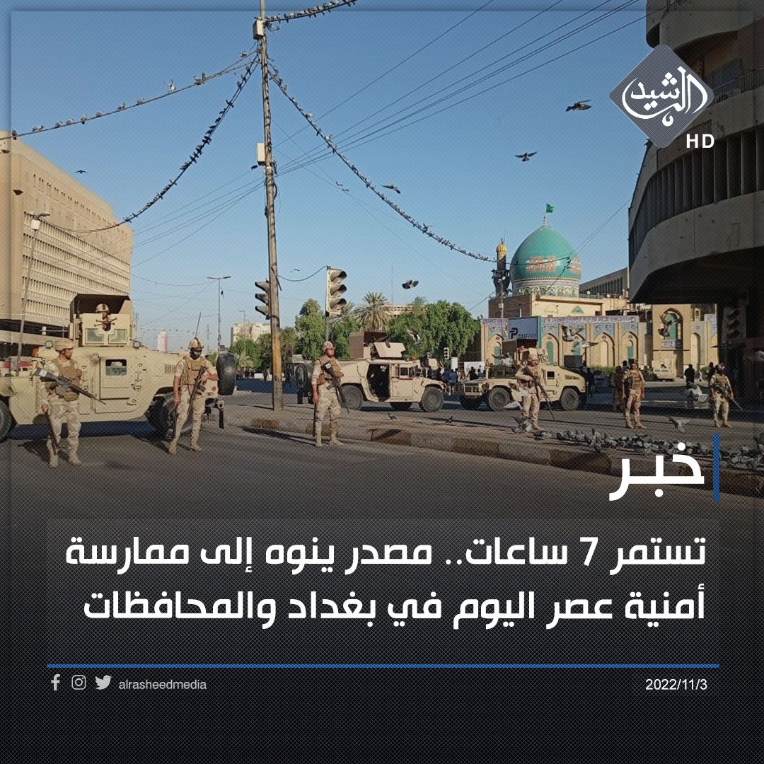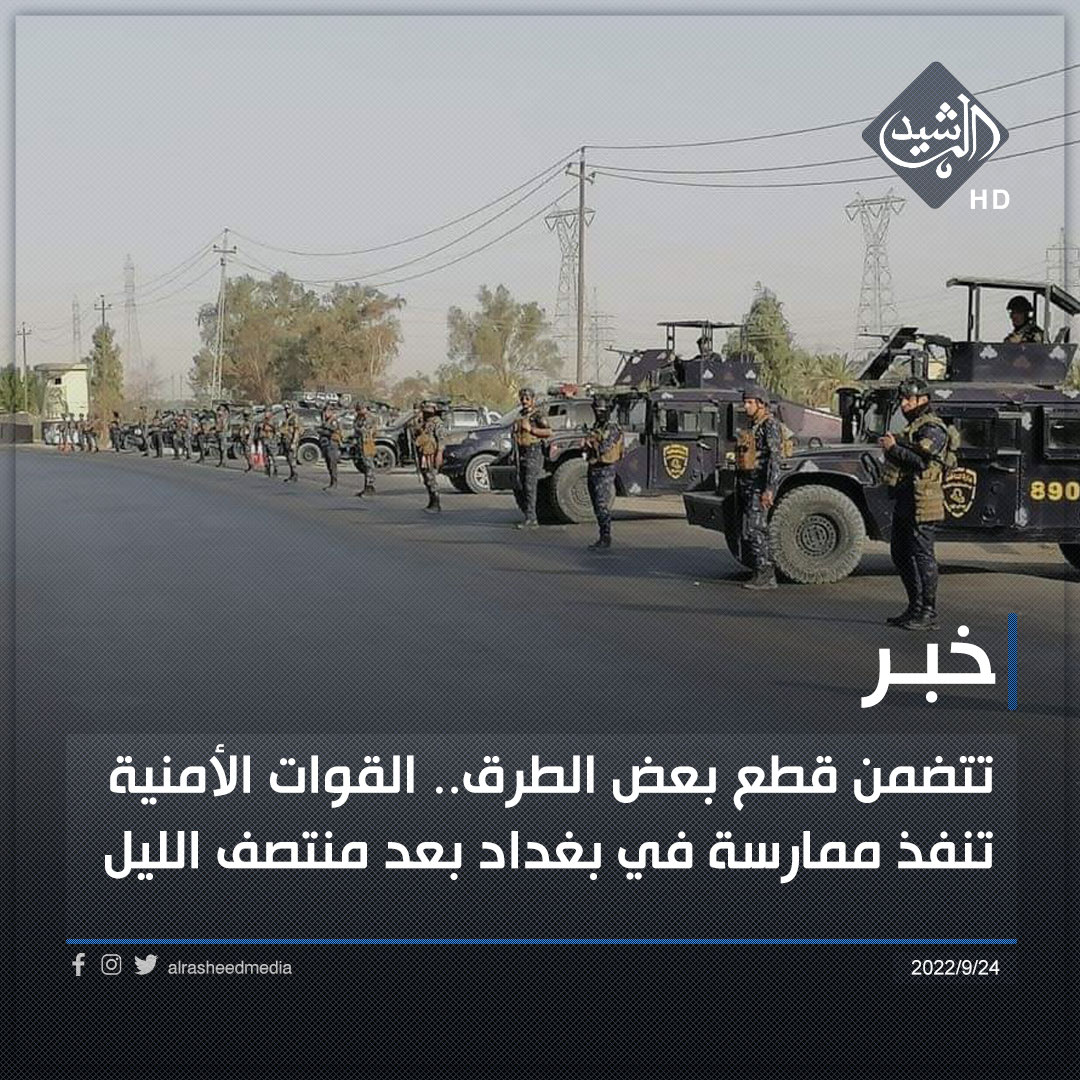 مصدر: تنفيذ ممارسة امنية في جانبي العاصمة بغداد في الساعة 12 ليلاً