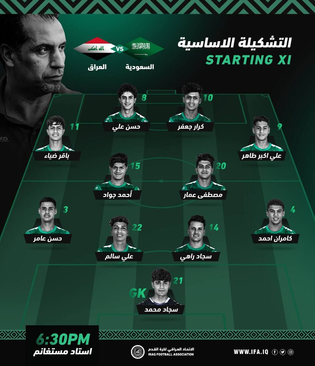 التشكيلة الأساسية لمنتخب ناشئة العراق لمواجهة نظيره السعودي